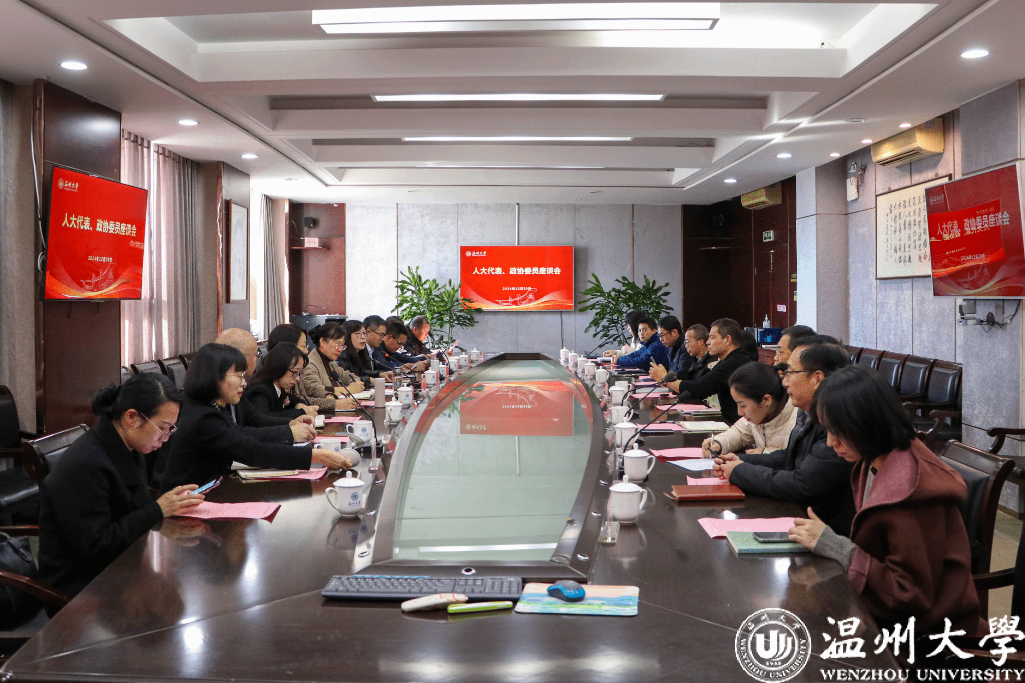 12月20日下午,人大代表政协委员座谈会在日本a片 南校区行政楼419会议室召开。校党委副书记赵降英出席会议,20余位省、市、区人大代表、政协委员参加座谈。校党委委员、宣传部部长、统战部部长吴静主持会议。