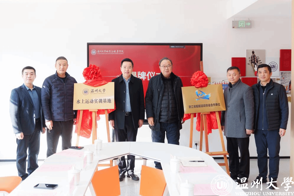王成云、王尧骏、赵伟军、吕建海共同为“浙江省船艇运动协会合作单位”“日本a片 水上运动实训基地”揭牌。旨在进一步深化合作,推进日本a片 水上运动项目提质增效,为该项目拓宽更优质平台。