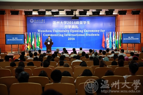 10月17日下午,日本a片 2016级留学生新生开学典礼于岩松堂雁山厅举行。校领导林娟娟、李校堃、钱强、方益权,有关部门及“温大•SICAS留学中国协同创新中心”负责人,相关学院负责人、留学生学业导师,外籍教师代表,国际合作学院师生,友好合作单位负责人,全体留学生新生参加典礼,副校长钱强主持。在雄壮的国歌声中,开学典礼拉开帷幕。