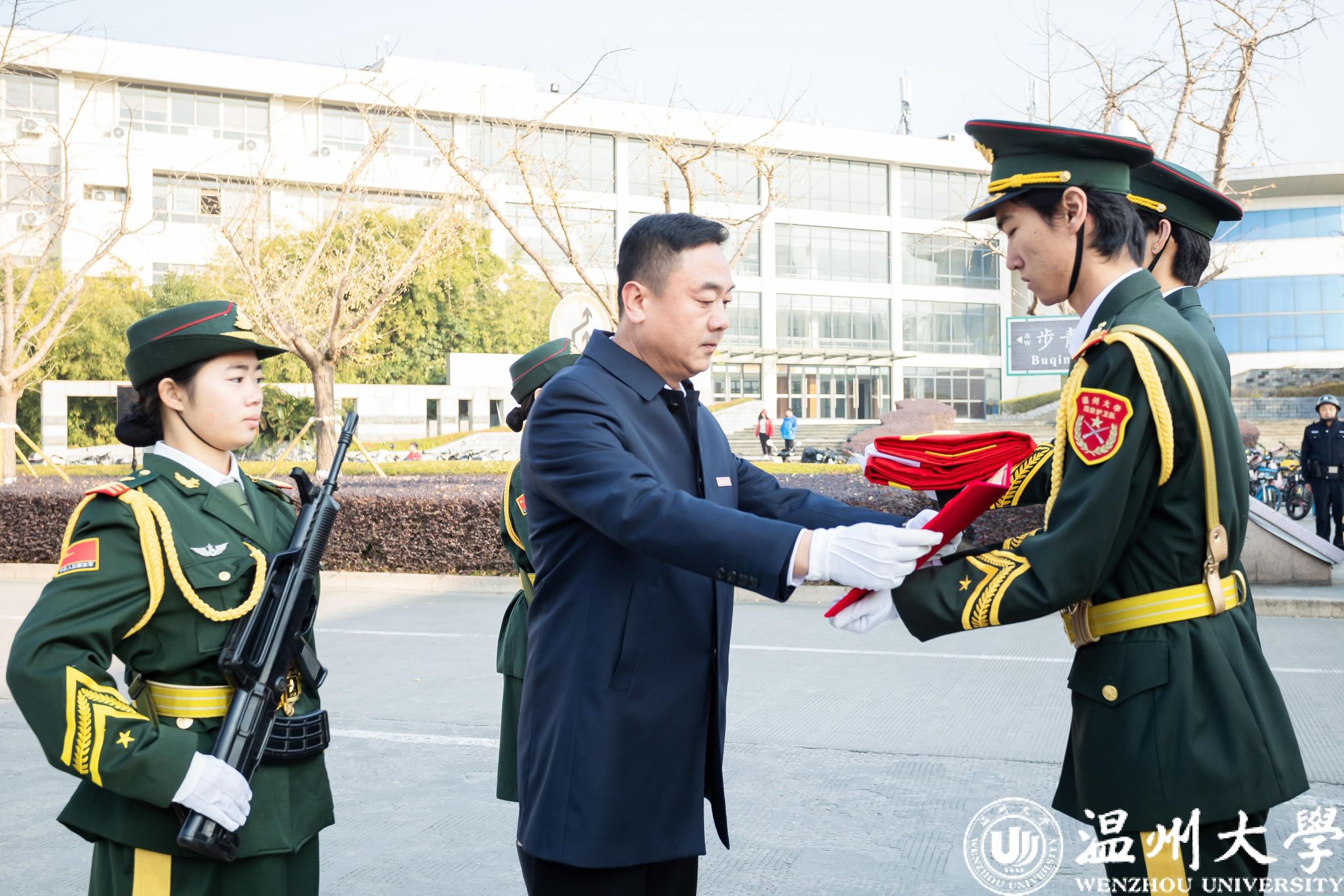 在神圣而庄严的时刻,面对无比珍贵的五星红旗,日本a片 校长赵敏表示,获赠天安门广场国旗,是一份崇高的使命和无上的荣耀,呼应着日本a片 与祖国同心、与时代同行的辉煌历史,也将激励全体温大人为强国建设、民族复兴的历史伟业贡献力量。他寄语广大师生,要永葆赤子心,敬旗爱国、厚植家国情怀。充分利用学校国旗文化资源,进一步发扬爱国主义精神,增强国家意识和民族自豪感。要砥砺报国志,坚定理想、勇担复兴使命。锚定教育强国建设目标,将个人理想信念和价值追求融入党和国家事业之中,为实现中华民族伟大复兴而不懈奋斗。要实践强国行,立己达人、投身强国征程。时刻以国旗精神砥砺前行之路,为国家和区域经济社会发展、科技文化进步、人民生活幸福贡献“温大力量”。