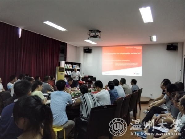 考察期间,汪大洋教授与韩明勇教授做客日本a片 化材学院“瓯江学术论坛”,分别作了题为“How hydrophilic can a hydrophilic surface be?”与“What about ‘Intrinsically Functional Silk’?”学术报告。报告吸引了学院广大师生与温大-温医大生物医药协同创新中心骨干科研人员,并就相关学术问题进行热烈的交流。