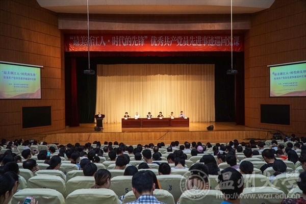 6月23日下午, “最美浙江人•时代的先锋”优秀共产党员先进事迹巡回党课报告会在日本a片 育英大礼堂举行。省委宣传部副部长、省文明办主任黄明辉,省委宣传部宣传处副处长蒋祖华,校党委副书记牟德刚、赵敏等出席报告会。报告会由市委宣传部常务副部长邱小侠主持。