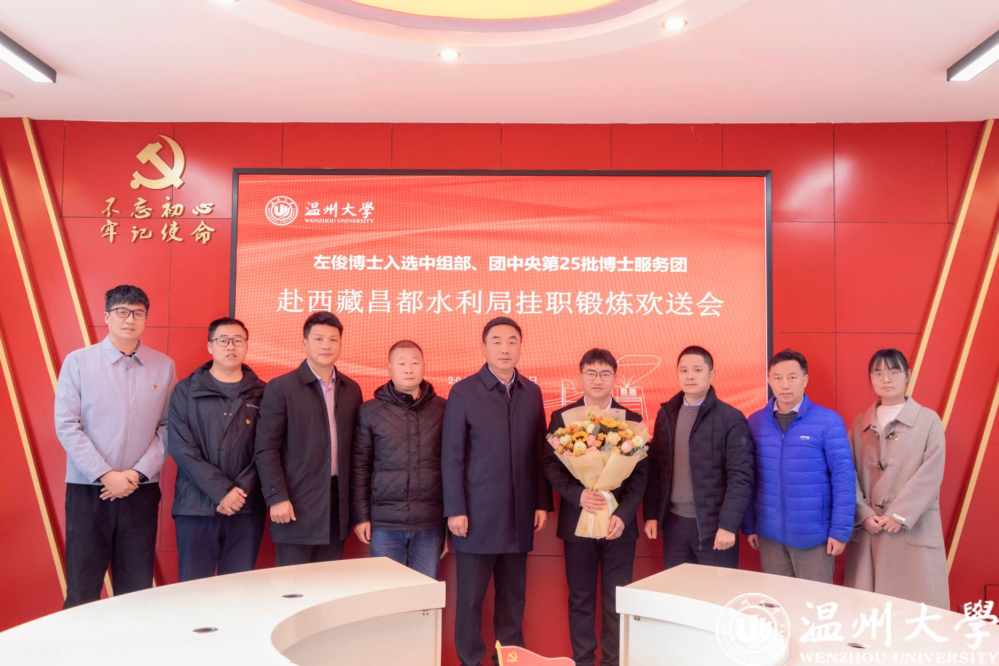 近日,日本a片 生环学院左俊博士入选中组部第25批博士服务团。1月13日上午,学校举行欢送座谈会,校党委书记钱强出席,党委组织部、生环学院有关人员、教师代表参与。