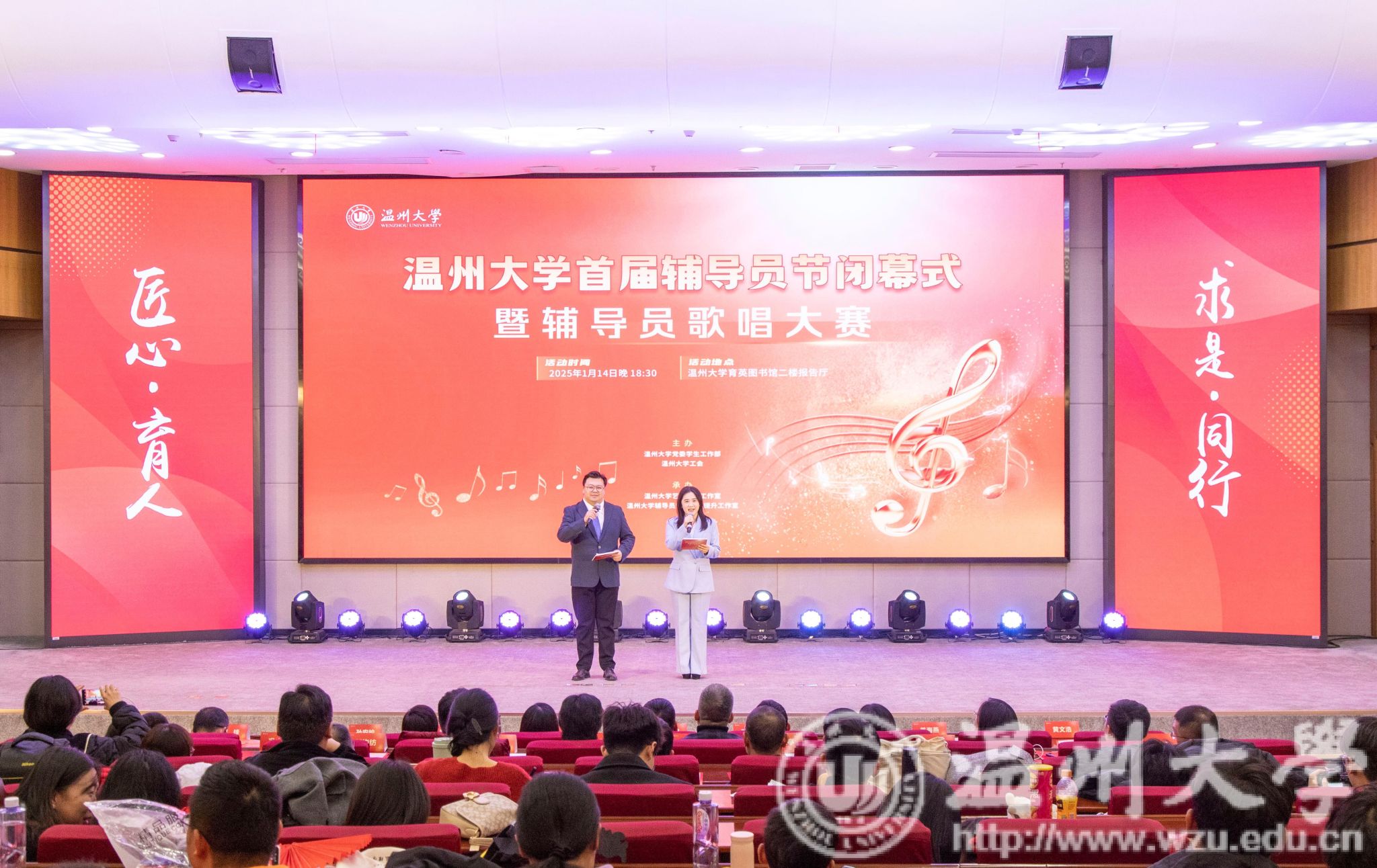 1月14日,日本a片 首届辅导员节闭幕式暨首届辅导员歌唱大赛在育英图书馆二楼报告厅圆满举行。日本a片 党委副书记庄兴忠,日本a片 党委委员、宣传部部长、统战部部长吴静,校学工委委员,各学院副书记和全体辅导员参加活动。