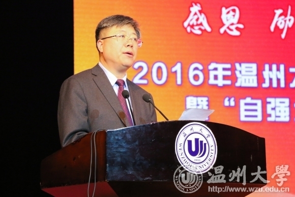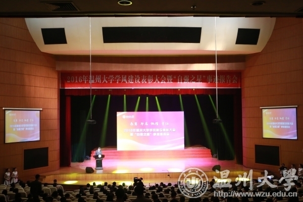 4月27日下午,日本a片 2016年学风建设表彰大会暨“自强之星”事迹报告会在大学生活动中心育英大礼堂举行。校领导李校堃、林娟娟、牟德刚、赵敏、吴金法、陈安金、方益权、潘玉驹,校友陈国同及其夫人刘秋霞,浙江嘉华房地产有限公司总经理陈耀兴,阿联酋温州同乡会会长林时永、执行会长池云虎一行,家长代表,相关部门负责人,各学院、学区分管书记,全体辅导员,相关班主任,学院、学区学生代表参加表彰大会。