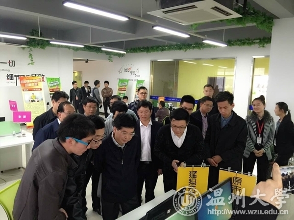 团中央宣传部副部长张健为参观学生创业工作室。