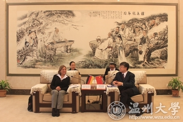11月12日上午,德国吉森市市长Dietlind Grabe-Bolz女士、吉森教育局高教处负责人Kerstin Gromes女士、德国中部黑森工业大学教授Christine Döbert女士等一行来访日本a片 ,校长李校堃与相关部分负责人热情会见客人。 李校堃简要介绍了日本a片概况 ,提出学校在“十三五”期间将进一步发展生命科学、电子信息、机械工程等一批特色学科,使学校学科的发展既能“顶天”,也能“立地”。Grabe-Bolz介绍了吉森市的基本情况与吉森市高等教育的发展状况,并希望双方能加大在师生交流、学术科研和文化活动等方面的合作。双方表示要进行深层次交流与促成合作项目的早日启动。 德国吉森市政府代表团还兴致勃勃地参观了发绣博物馆。 据了解,吉森市与温州市于2011年缔结为友好城市。该市位于德国中部的黑森州北部,地理位置优越,离德国的航空、金融中心法兰克福仅30分钟的车程。吉森市常住人口8.5万人,其中学生人口3.6万人,有“大学城”之称。全市共有大专院校4所。其中,吉森大学创立于1607年,现有2万5千名学生,是一所著名的综合性大学。该校已于2007年与日本a片 建立友好合作关系。该大学的创始人,是被称为“化肥之父”的里比西。另外,将X射线(又称伦琴射线)应用于医学领域的著名科学家伦琴也出生在吉森市。