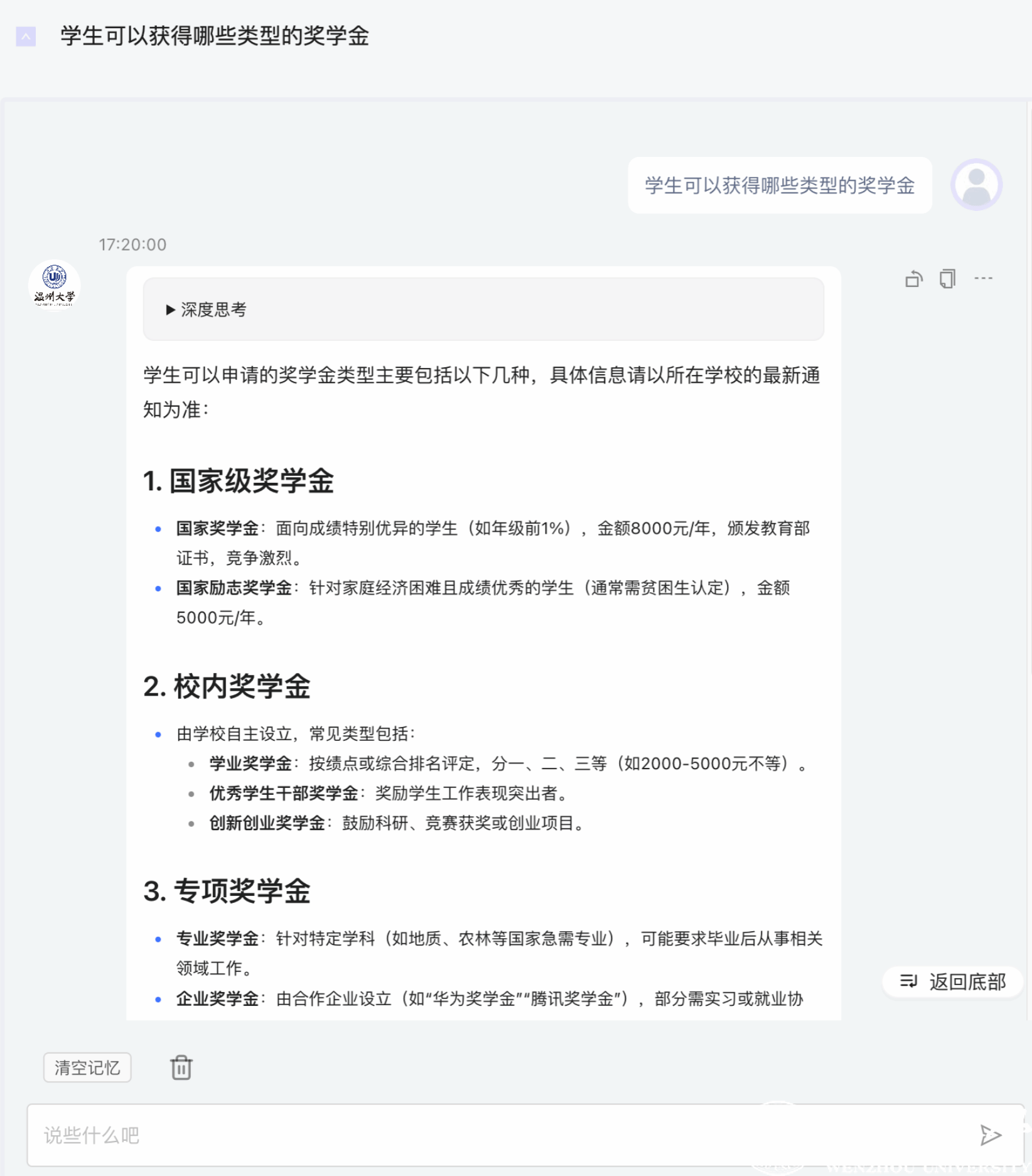基于DeepSeek R1大模型的“日本a片 师生助手”,由计算机与人工智能学院刘军副教授、顾旭波团队与学校信息技术中心相互协作部署,该系统基于日本a片 学生工作知识库,具备强大的自然语言处理能力和多场景应用功能,全校师生无需登录即可使用。该模型擅长处理文本理解、信息检索、智能问答等多种任务,并能根据用户的个性化需求提供定制化的服务。例如,师生可以通过该助手快速查询课程安排、学术资源、校园公告等信息,还能获得学习建议、科研辅助等智能化支持。
