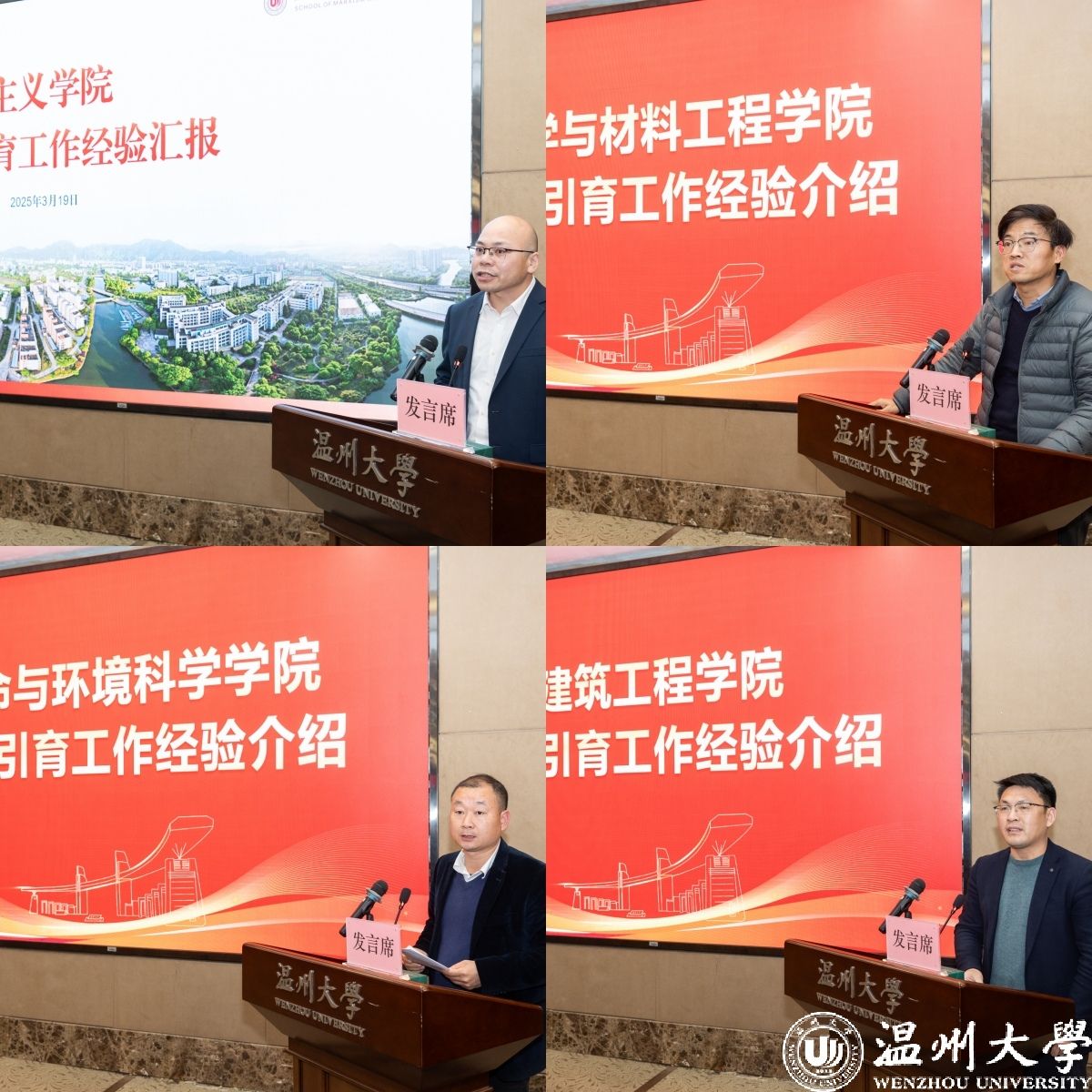 马克思主义学院、化学与材料工程学院、生命与环境科学学院和建筑工程学院分别围绕学科建设和学院发展实际,介绍了人才引育工作的经验做法。各学院结合自身学科特性,有的从搭建学术平台、推行导师制等方面发力;有的凭借专业优势,通过校企合作的“五个一”方式吸引人才;有的以才引才,开展国际合作,拓宽引才视野;有的通过传帮带的方式,充分发挥人才培育接力棒的功效。这些宝贵经验为各学院提供了思路,有力推进了学院间互鉴共进、聚势赋能。