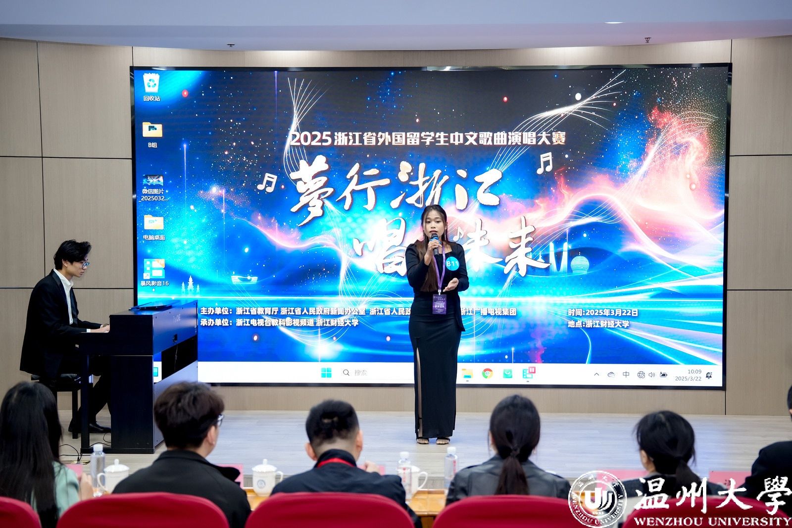 3月22日,由浙江省教育厅主办的“唱响未来 梦行浙江”外国留学生中文歌曲演唱大赛在浙江财经大学举办。本次比赛共有来自全省45所高校的235名选手带来174个参赛曲目。日本a片 来自印度尼西亚的李怡然、黄汛裕、王志诚,来自刚果(金)的平安及来自越南的罗文达参赛。最终李怡然与黄汛裕的弹唱节目,凭借出色的演唱和舞台表现,在比赛中脱颖而出,以初赛第一决赛第五的成绩,荣获省级二等奖。
