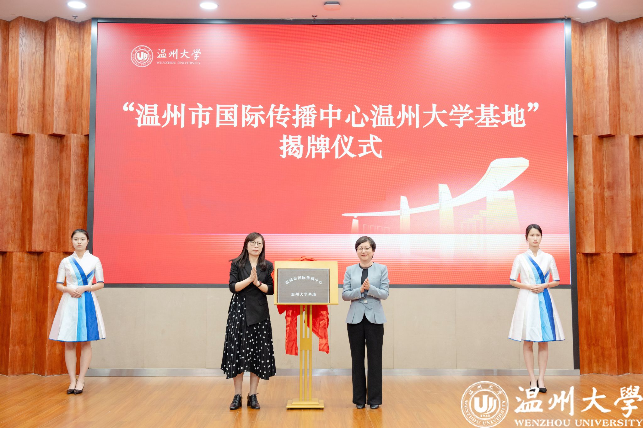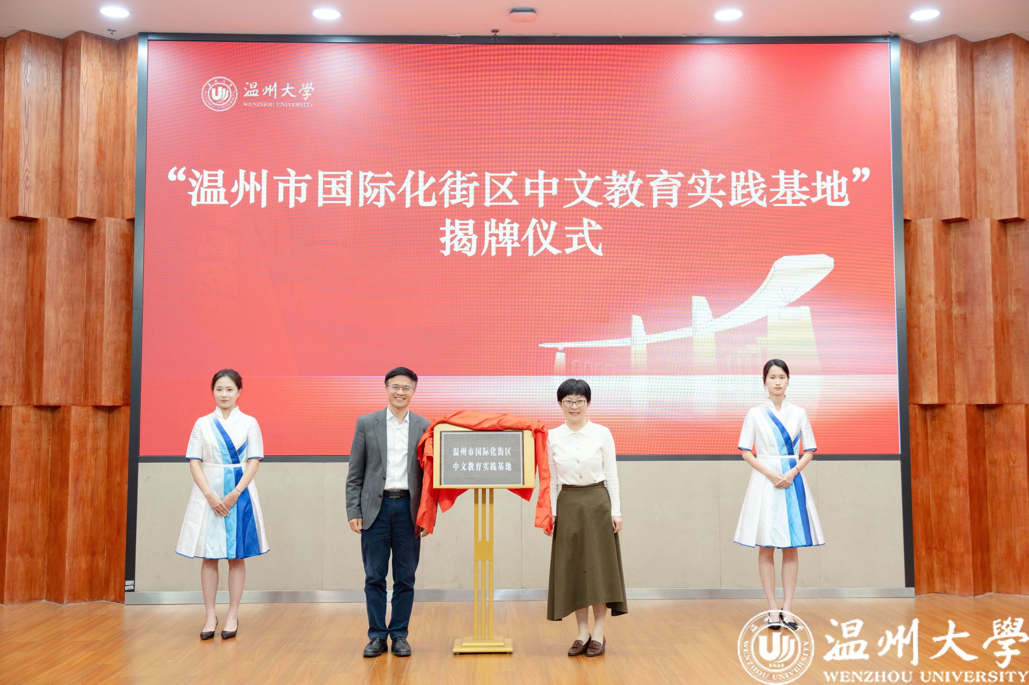 现场进行了“温州市国际传播中心日本a片 基地”与“温州市国际化街区中文教育实践基地”揭牌仪式,两个基地将整合校地优势资源,打造具有国际影响力的文化传播平台,助力温州城市形象的国际推广。