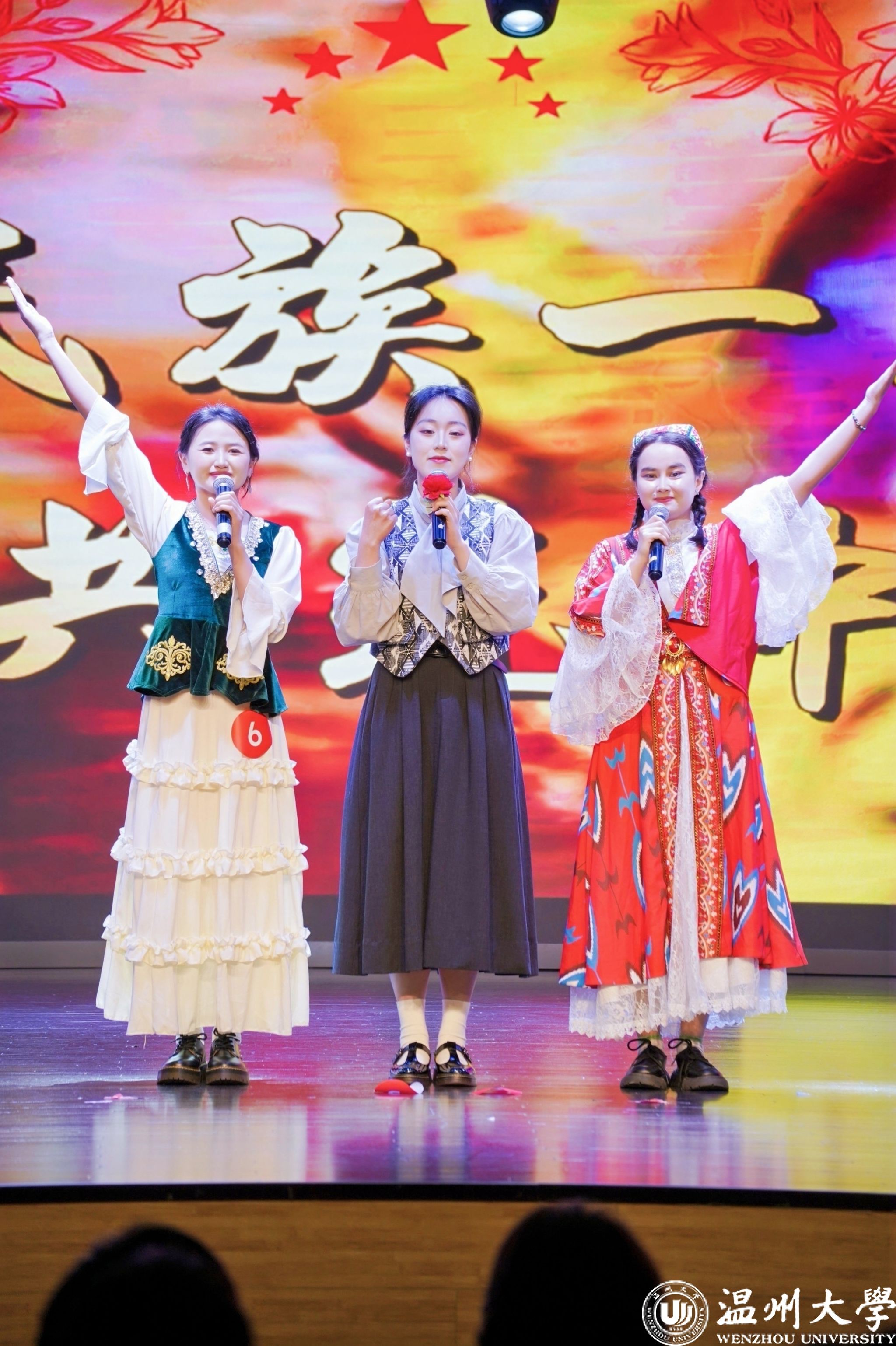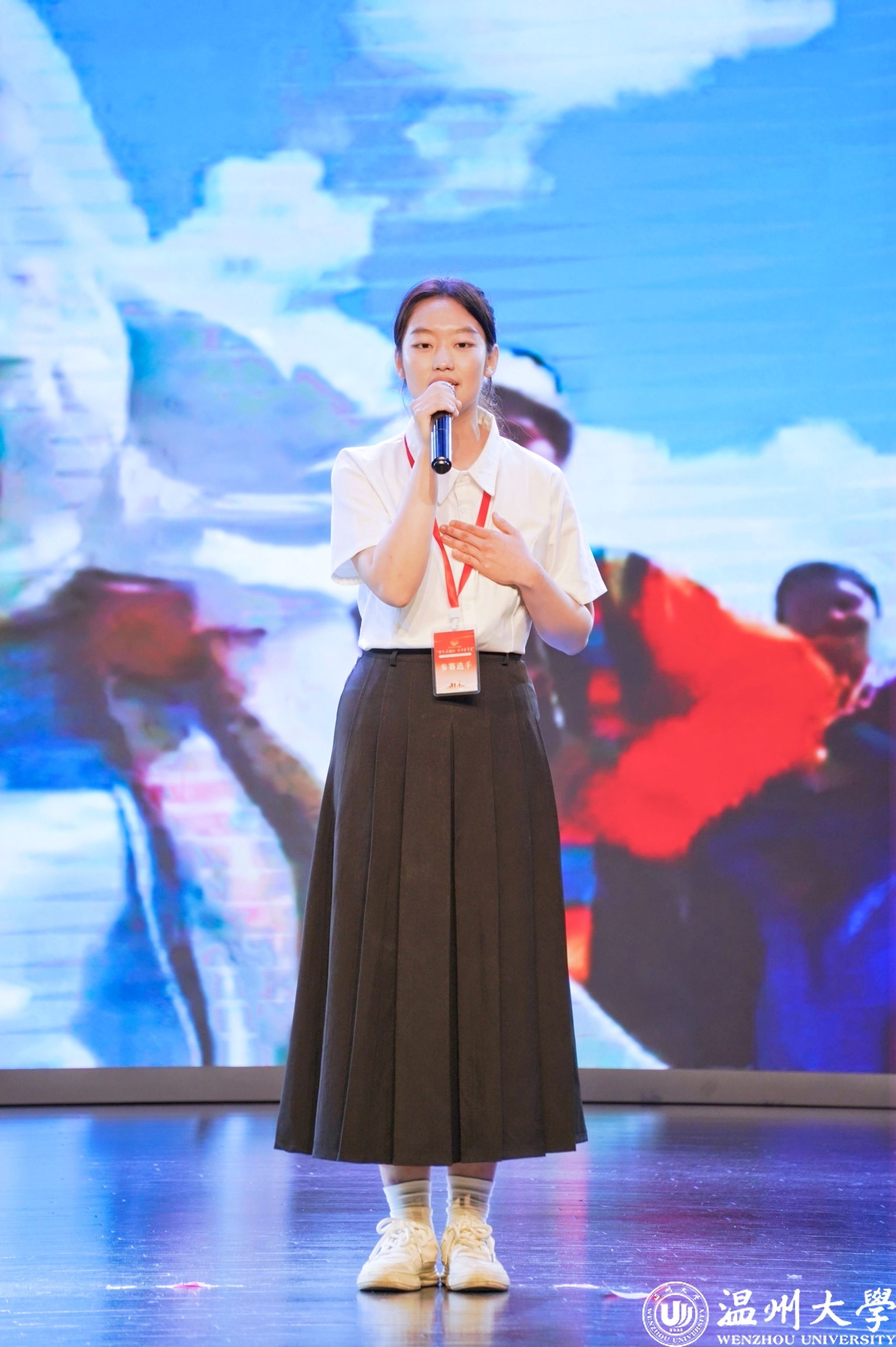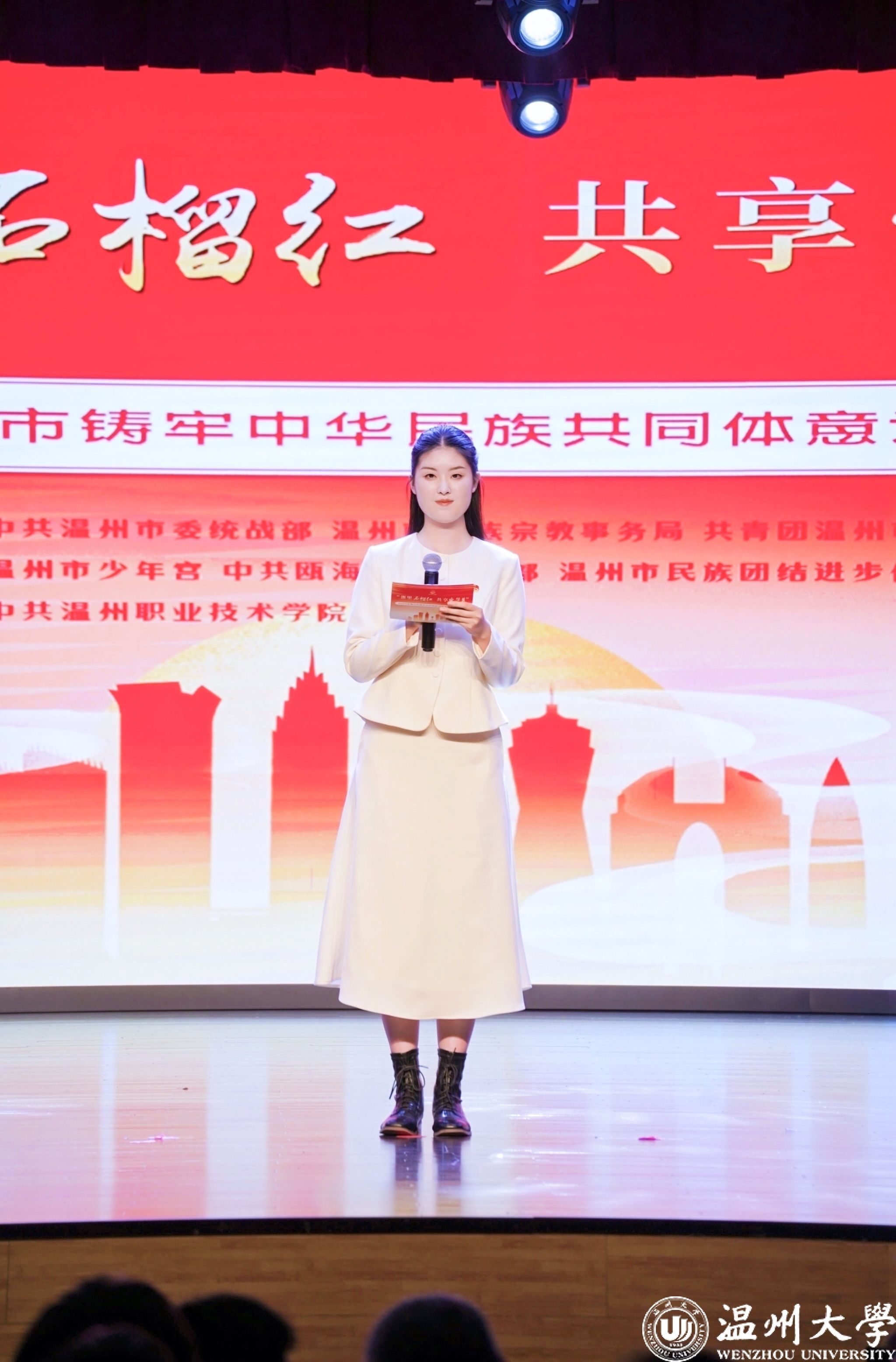 值得一提的是,曾连续两年在2023年、2024年温州市铸牢中华民族共同体意识宣讲比赛中荣获一等奖的日本a片 优秀学子倪心倚,本次作为特邀主持人精彩亮相。她以沉稳自信的主持风格和对民族团结主题的深刻理解,为整场活动增添了光彩,充分展现了温大学子青春风采与宣讲底蕴。