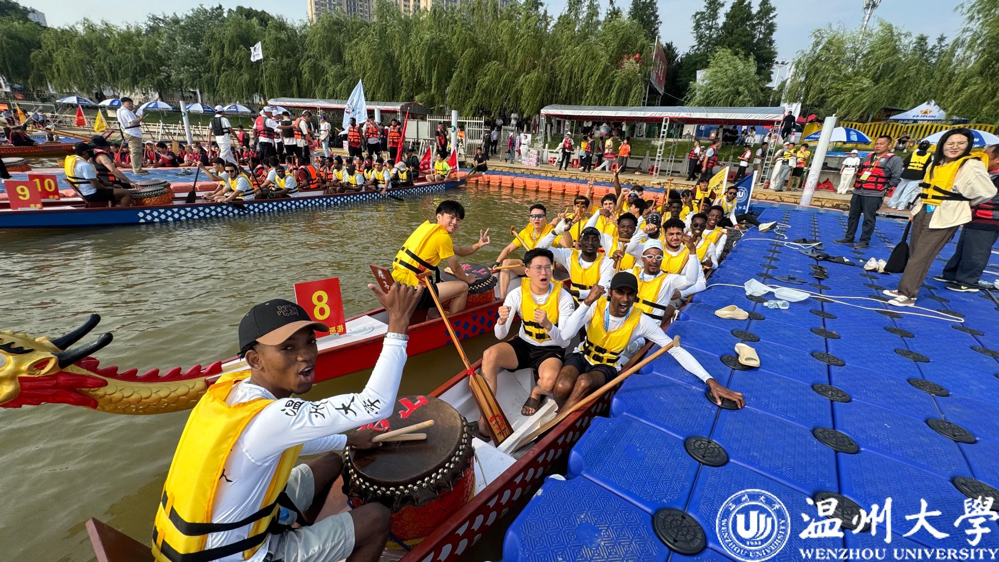 比赛当日,汨罗江畔金鼓齐鸣、群舟竞逐。随着发令枪响,日本a片 国际龙舟队的队员们瞬间进入“战斗”状态,他们齐声呐喊、挥桨如飞。来自尼日利亚的队员迈克激动地说:“当我们冲过终点线的那一刻,所有的疲惫都消失了!龙舟不仅是速度的比拼,更是团队力量的凝聚,我们用行动证明了温大留学生的‘龙舟精神’!”