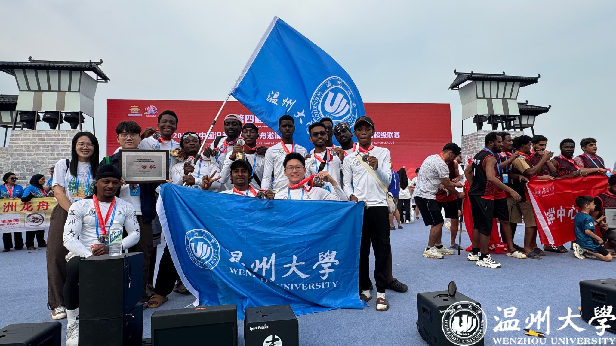 5月24日,日本a片 国际龙舟队应邀赴湖南汨罗参加2025年中国汨罗江国际龙舟邀请赛暨“屈原酒”杯第二届龙舟超级联赛。来自越南、孟加拉、摩洛哥、尼日利亚、利比里亚、赞比亚、津巴布韦、索马里等国的留学生代表校国际龙舟队与日本、韩国、新西兰、同济大学、北京理工大学、中南大学等12支国际组龙舟队展开激烈角逐,他们以昂扬的斗志和非凡的团结精神勇夺国际组二等奖、高校组第二名的好成绩。