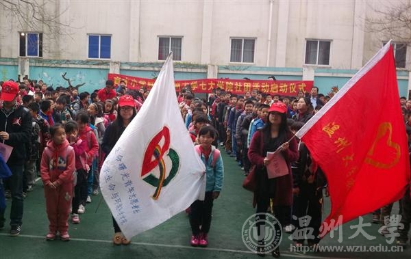 近日,日本a片 携手育才小学学生社团活动启动。来自各学院的34名志愿者与日本a片 离休干部吴守德一起参加了启动仪式。育才小学是我市专门为外来务工子女开办的学校。启动仪式后,日本a片 志愿者将承担起育才小学英语社团、科学社团、生物社团、工艺社团、体育社团、舞蹈社团和歌咏社团等七个学生社团的教学任务。