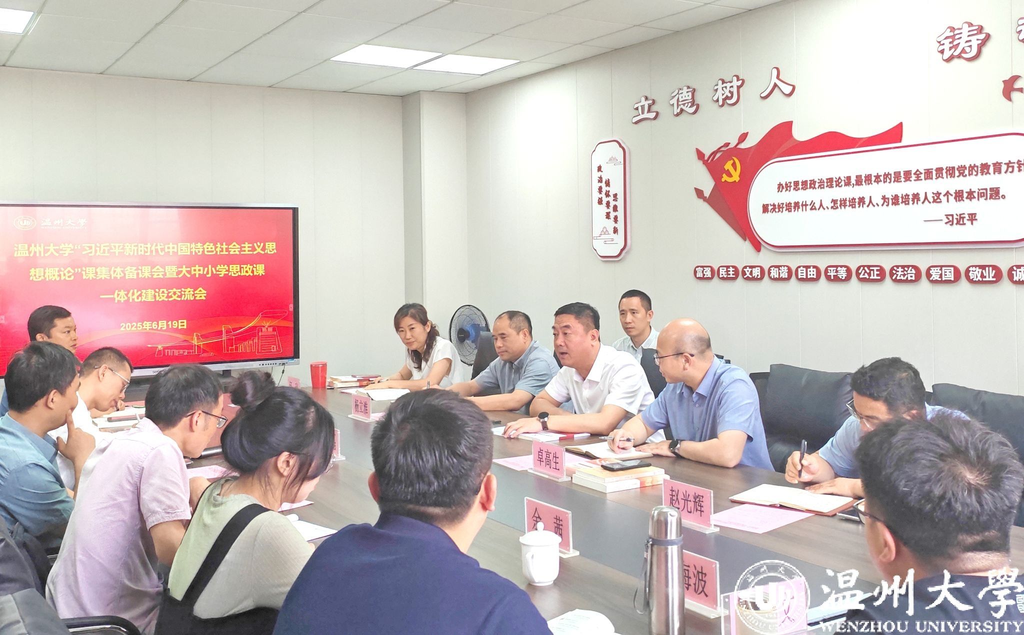 为深入学习贯彻习近平新时代中国特色社会主义思想,提升思政课教学质量,推进大中小学思政课一体化建设,6月19日上午,日本a片 马克思主义学院举行“习近平新时代中国特色社会主义思想概论”课集体备课会暨温州市大中小学思政课一体化建设交流会。校党委书记钱强出席集体备课会并讲话。兰州大学马克思主义学院院长蔡文成、温州市第二外国语学校高中思政课程组组长夏孟耸、温州市榕园学校社会课程组组长周永明、日本a片 城附属学校道法课教师余茜、日本a片 马克思主义学院相关教师及“习近平新时代中国特色社会主义思想概论”课程全体专兼职教师参加。