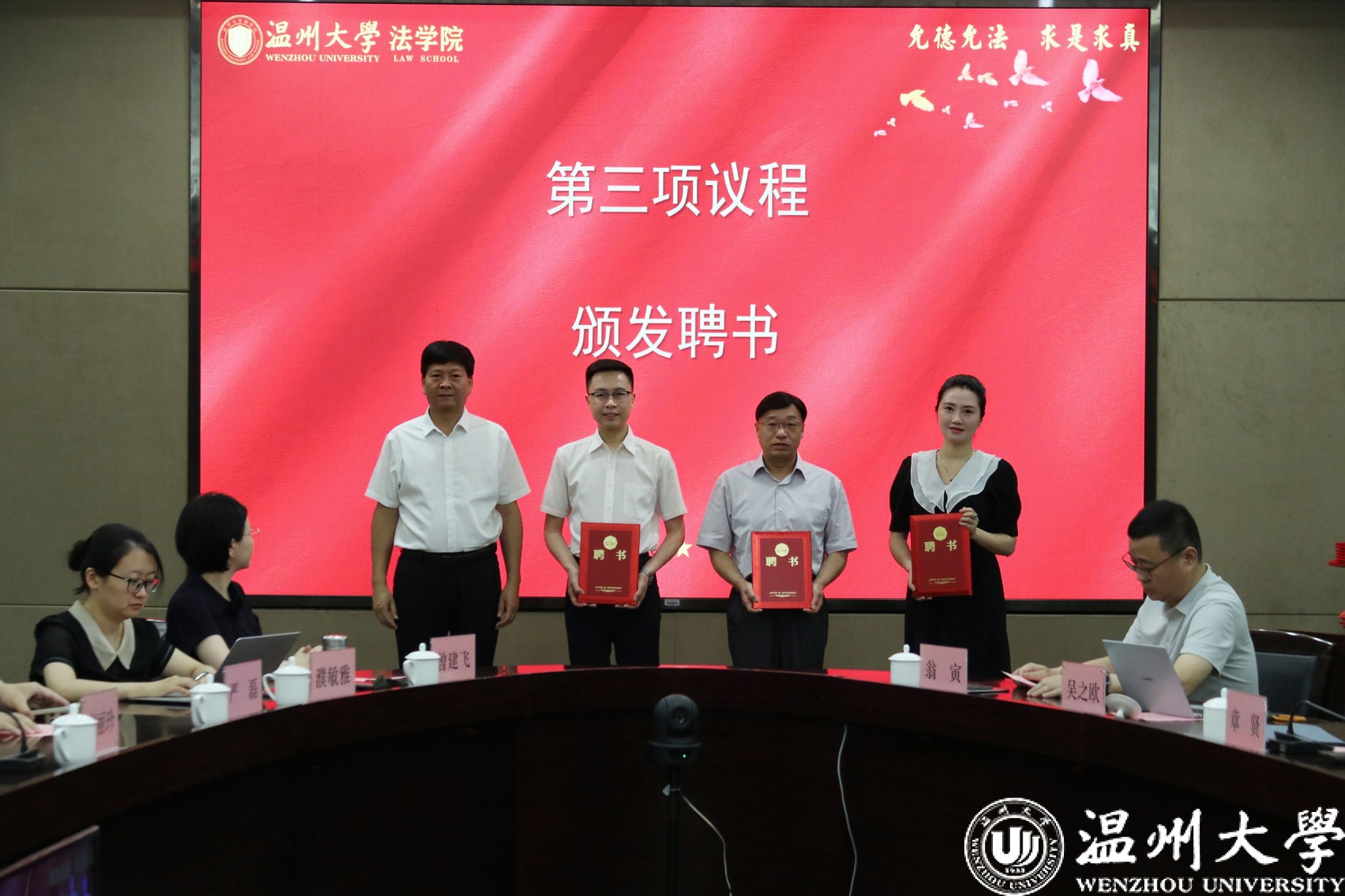 聘任仪式上,庄兴忠为顾问代表颁发聘书,周永盛、徐良悟、张杰尔为理事会成员颁发聘书。