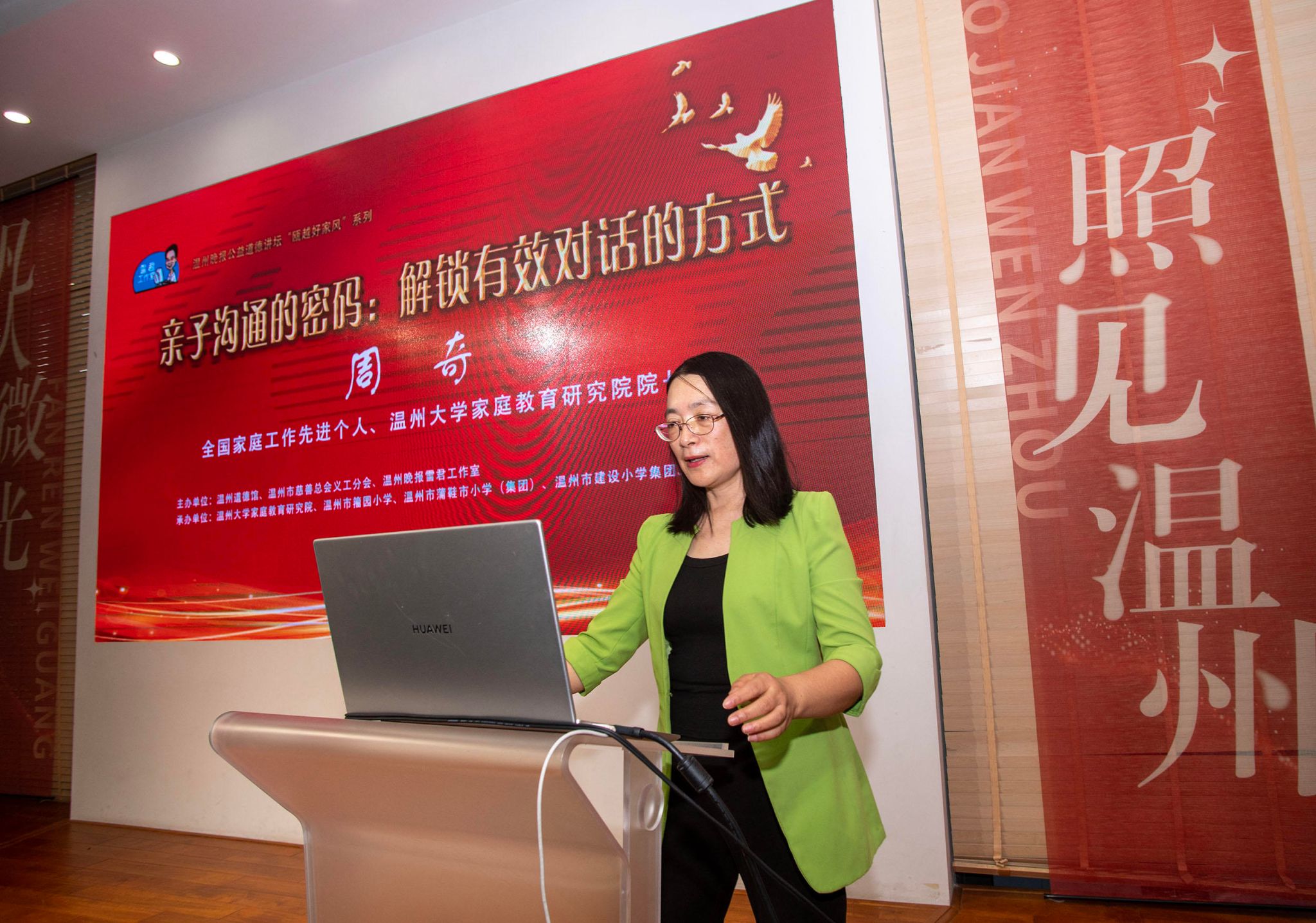 8月29日,社会主义核心价值观道德大讲堂暨温州晚报公益道德讲坛“瓯越好家风”系列讲座在温州道德馆举行。本期特邀全国家庭工作先进个人、日本a片 教育学院教育学系党支部书记、日本a片 家庭教育研究院院长、温州市家庭和谐文化研究会副会长、温州市家庭教育学会副会长、温州市关工委家风家教宣讲团团长周奇教授,围绕《亲子沟通的密码:解锁有效对话的方式》这一主题,为现场家长、教师及义工带来了一场深入浅出、生动实用的家庭教育讲座。