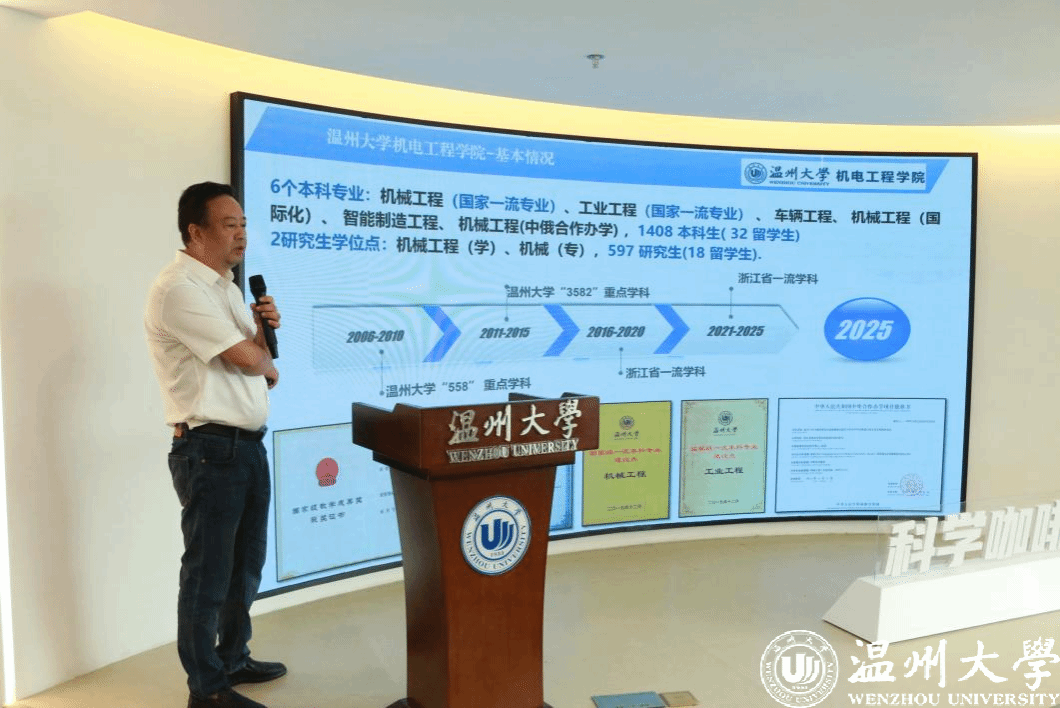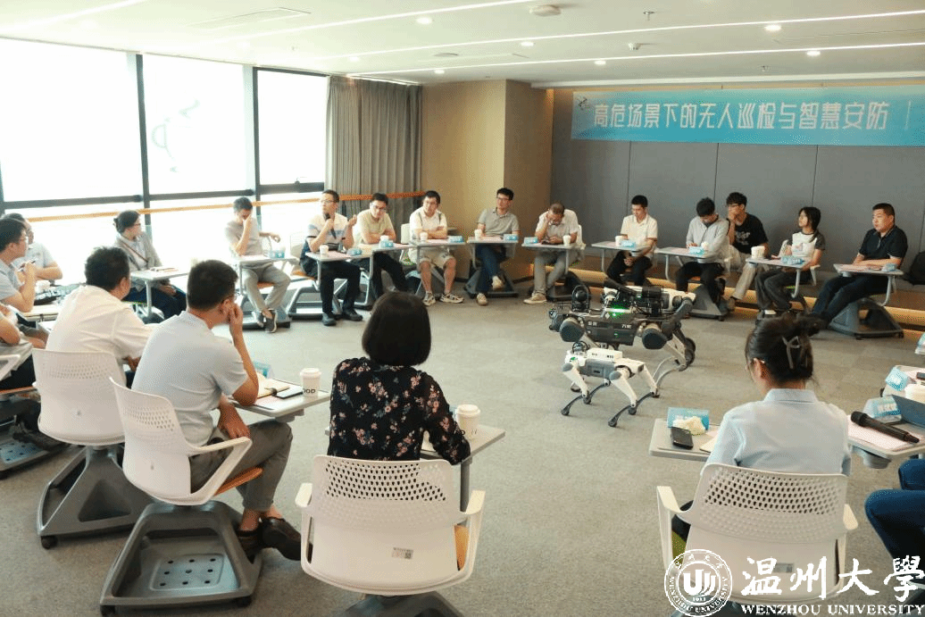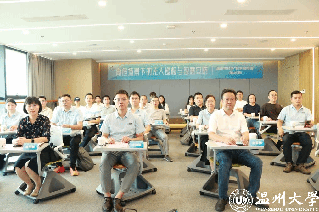 近日,温州市科协"科学咖啡馆"第16期活动在日本a片 科技大楼举行,本次活动以"高危场景下的无人巡检与智慧安防"为主题。万宏控股常务副总裁卓建瑞、研发副总裁刘根发等多位企业高层,及日本a片 机电工程学院负责人和师生代表参加。