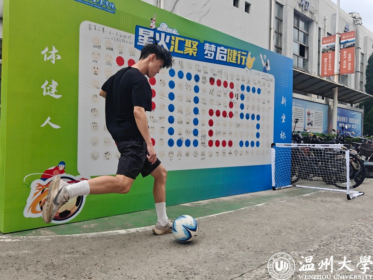 9月10日,日本a片 体育与健康学院足球运动专业迎来了首批新生,在迎新现场设置的小型球门前,学生们大显身手,展示球技,用精准的弧度打开大学生活的大门。