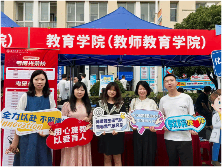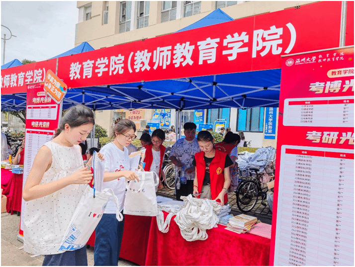 为了引导新生锚定大学目标,笃定未来志向,重视学业规划,温大教育学院将升学启蒙作为迎新重要环节,在迎新摊位前布置了考研考博光荣榜,引得众多新生与家长驻足观看。“哇,好多考上华东师大、南师大等名校的,好厉害。”在赞叹学长学姐优异表现的同时,新生们也在心中埋下升学深造的种子。
