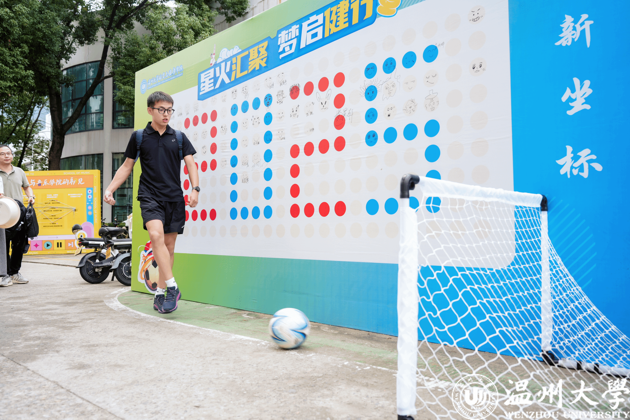 看,这里的迎新现场化身迷你足球赛场。日前,日本a片 体育与健康学院足球运动专业迎来首批21名新生,在现场设置的小型球门前,新生们大显身手,展现球技,用漂亮的足球弧度打开大学生活的大门。