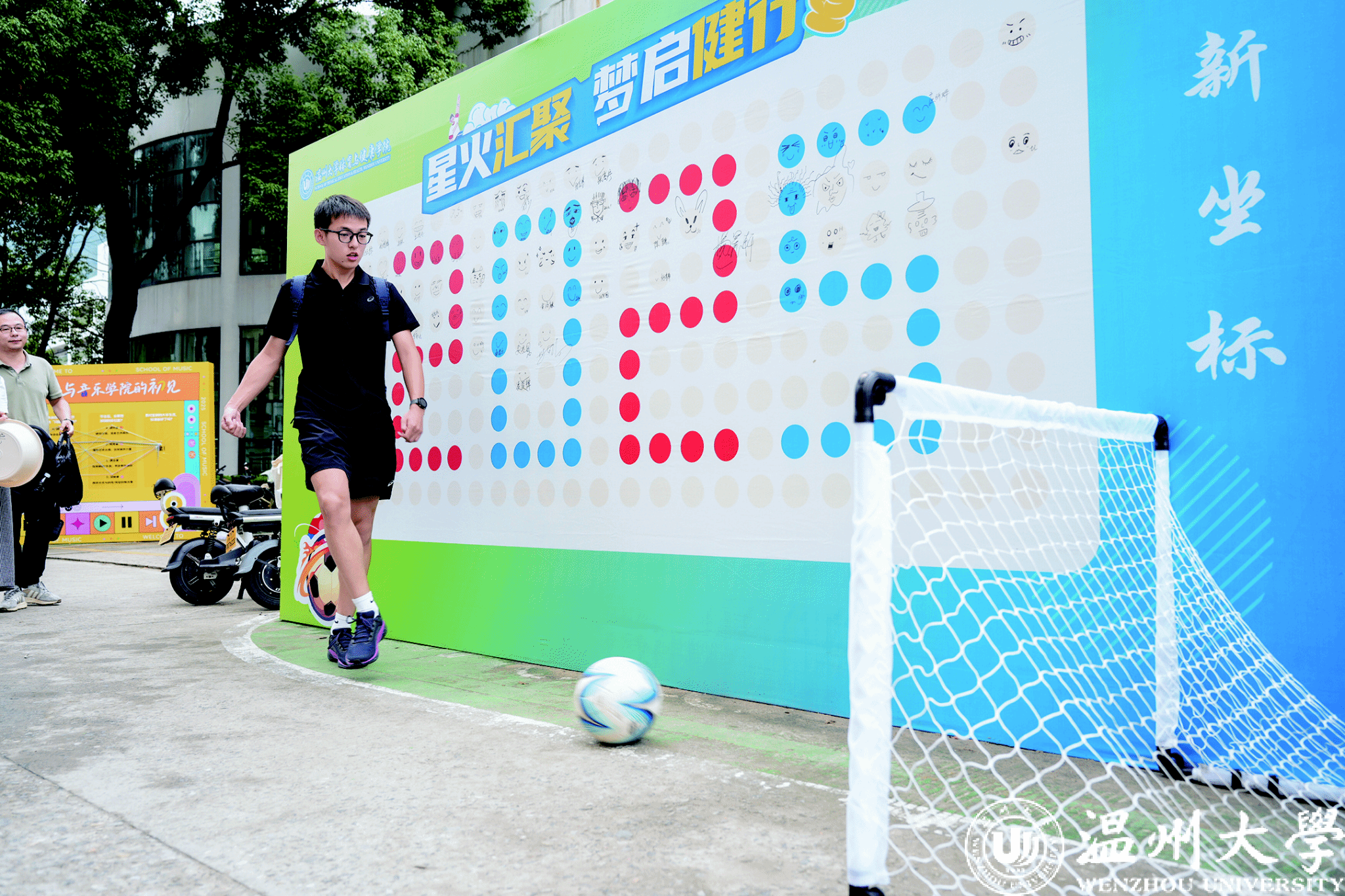 看,这里的迎新现场化身迷你足球赛场。日前,日本a片 体育与健康学院足球运动专业迎来首批 21 名新生,在现场设置的小型球门前,新生们大显身手,展现球技,用漂亮的弧度打开大学生活的大门。