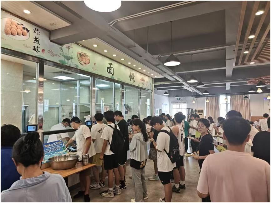 活动当天,明心湖宛如被按下“欢乐开关”,全校各学院的师生脚穿溯溪鞋,手持抄网,迫不及待开始“捕鱼大战”。下水后,同学们迅速进入状态:有的三两成群,默契配合围堵逃窜的鱼儿,一人负责惊扰、两人负责拦截,分工明确;有的则独自寻觅,凭借敏捷的身手紧盯水面波纹,待鱼儿现身便迅速出手,将活蹦乱跳的战利品收入网中。不一会儿,草鱼、鲫鱼、包头鱼等各种各样的鱼儿便被捕捞上岸了。让师生们惊喜的是,捕鱼节的“劳动红利”还延伸到了餐桌。活动第二天,学校食堂特意开设免费鱼宴窗口,厨师们将师生捕获的鲜鱼精心烹制,一道道美味佳肴不仅满足了味蕾,更让大家在品尝中回味捕鱼时的欢乐场景,深刻体会“劳动创造价值”的道理。