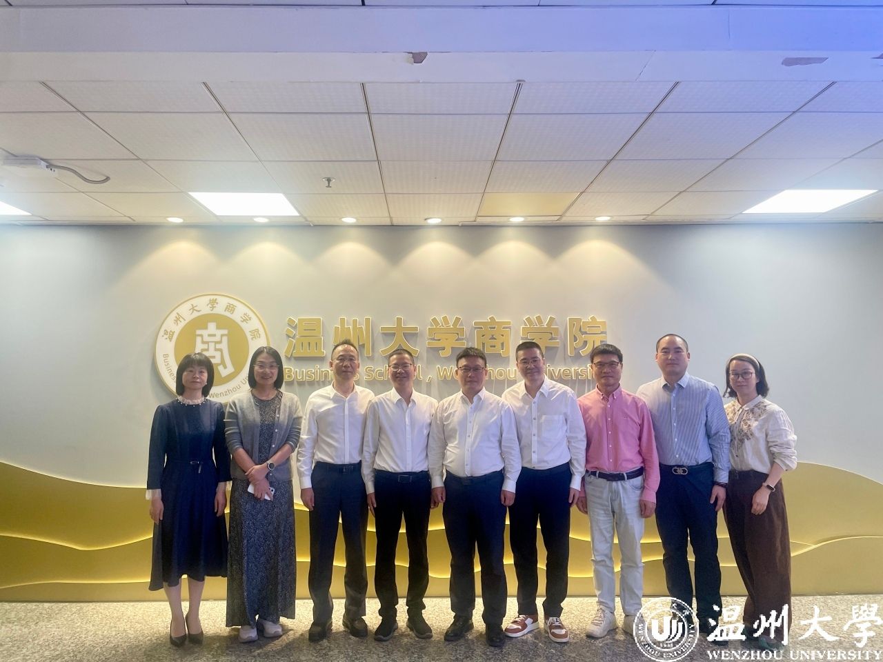2025年10月21日下午,瓯海区商务局党组书记叶忠达、副局长夏建群、瓯海区国际商会会长陈锦春、党建指导员朱永豹、原秘书长诸绍奇等一行赴日本a片 商学院,就深化“瓯商学堂”建设召开专题推进会与实地走访活动。日本a片 商学院党委书记唐华、副院长陈文芝等相关负责人陪同。