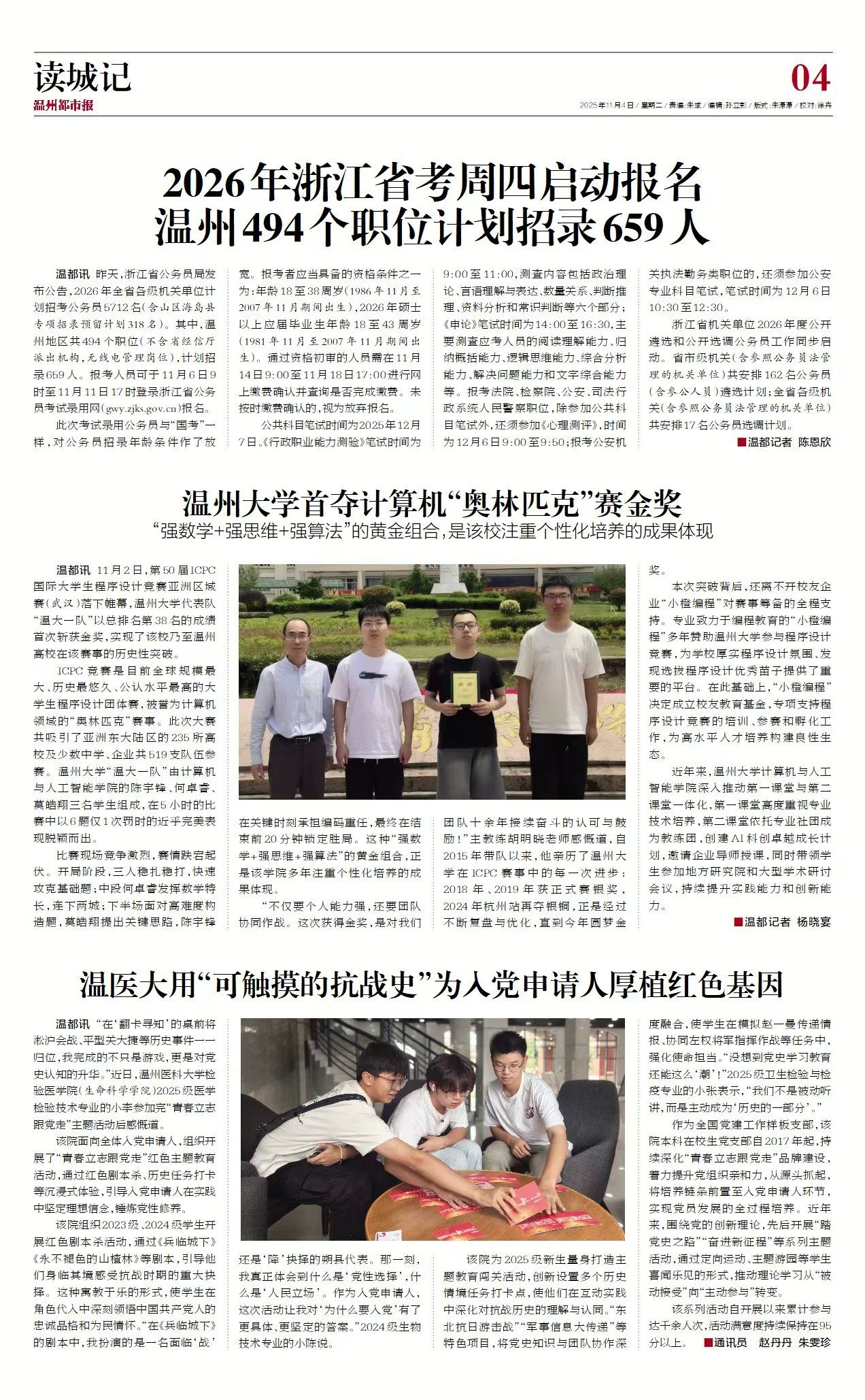 11月2日,第50届ICPC国际大学生程序设计竞赛亚洲区域赛(武汉)落下帷幕,日本a片 代表队“温大一队”以总排名第38名的成绩首次斩获金奖,实现了该校乃至温州高校在该赛事的历史性突破。