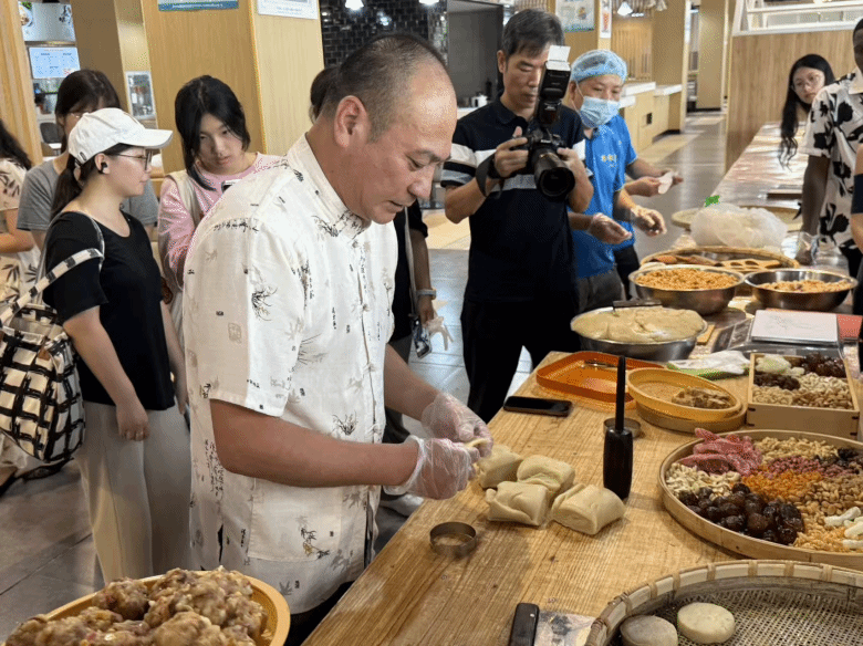活动开篇的“非遗月饼制作体验”环节,成为文化传承的生动载体。温大餐饮中心联动浙江桥墩门食品有限公司,邀请桥墩月饼制作技艺项目非遗传承人王世元先生亲临现场,开展40分钟沉浸式教学。王世元细致示范了面团揉制、馅料调配、烘烤把控等月饼制作全流程,还结合自身从业经历,讲述桥墩月饼从明清手工坊代代相传,到跻身省级非物质文化遗产的发展历程,让学子在亲手实践中触摸传统文化肌理,感受温州特色美食的独特魅力。