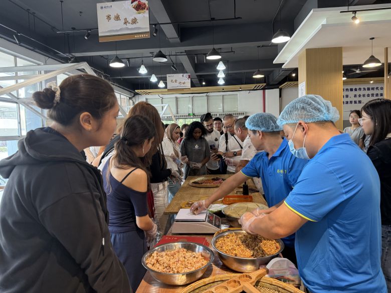 活动现场还特设地方特色菜品鉴区,餐饮中心旗下各食堂精选南北风味菜品集中陈列,从劲道面食到鲜香小炒,涵盖多样口味。学子们自由品鉴美食,在满足味蕾的同时拓宽文化视野。来自摩洛哥的留学生银春华感慨:“第一次亲手做月饼、品尝温州月饼,离家千里仍感受到温度。”