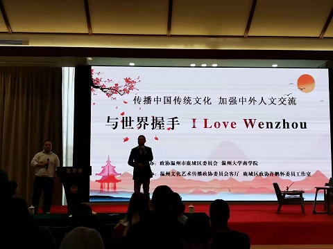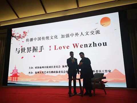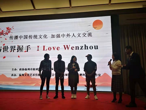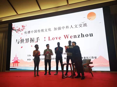 中外学生们首先参观了温州海外宣传基地的各大功能区,听取基地运营人许鹏怀先生介绍该基地为国际友人提供的服务情况。大家一起观看温州城市英语介绍片和基地拍摄的外国友人看温州系列视频,加深了对温州的感性认识。在此基础上,温州民俗专家向外籍留学生介绍温州自郭璞“七星建城”以来的城市演变和发展历史,向留学生展示了温州的历史积淀;随后,留学生还兴致勃勃地参与了温州传统剪纸艺术、体验中国茶道、观赏汉服秀,充分感受了中国传统文化的魅力。中外学生们首先参观了温州海外宣传基地的各大功能区,听取基地运营人许鹏怀先生介绍该基地为国际友人提供的服务情况。大家一起观看温州城市英语介绍片和基地拍摄的外国友人看温州系列视频,加深了对温州的感性认识。在此基础上,温州民俗专家向外籍留学生介绍温州自郭璞“七星建城”以来的城市演变和发展历史,向留学生展示了温州的历史积淀;随后,留学生还兴致勃勃地参与了温州传统剪纸艺术、体验中国茶道、观赏汉服秀,充分感受了中国传统文化的魅力。