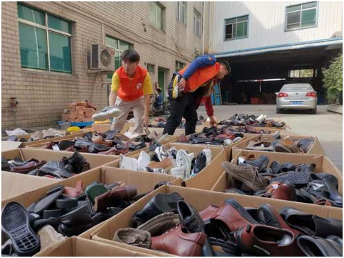 近日,四位日本a片 电气与电子工程学院的一八二义工志愿者马不停蹄地赶往30多公里外的瑞安莘塍,开展“缘来单脚鞋”公益活动。他们的任务是前往春达鞋业,接收一千多只捐赠的样品鞋,整理清洁后,再发往辽宁海城。