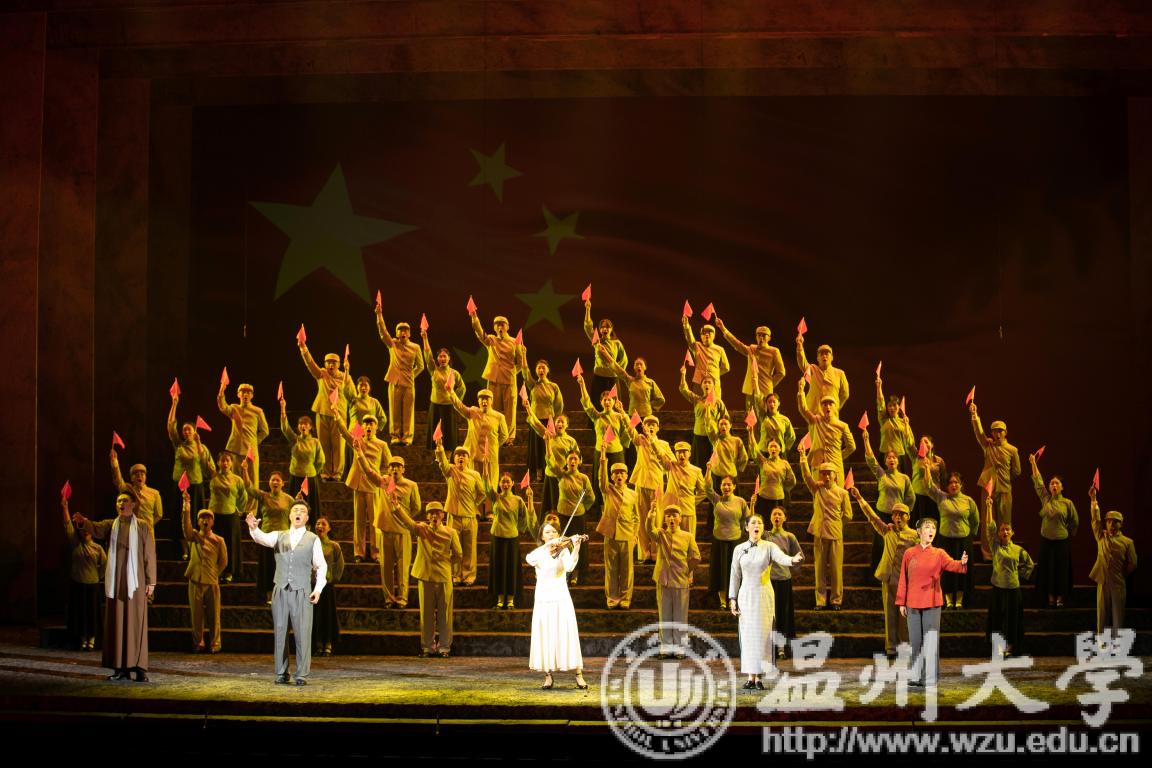 国旗是国家的象征和标志,是民族精神、爱国主义精神的集中体现。学校把“国旗的诞生”作为党史、新中国史教育的重要一课,爱国主义教育的鲜活教材,充分挖掘浙江红色“三地”政治资源,以日本a片 校友、五星红旗设计者曾联松投身革命和设计国旗的故事为蓝本,精心打造爱国歌剧《五星红旗》。200多名师生共同参与演绎,历时4个多月艰苦排练,于10月7、8日隆重试演,为新中国成立70周年献上日本a片 的红色经典之作。