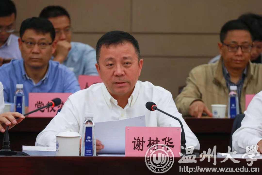 近日,日本a片 举办主题教育调研成果交流会,校领导班子全体成员、各职能部门和学院负责人参加会议,浙江省委第十五巡回指导组莅临指导,会议由校党委书记谢树华主持。