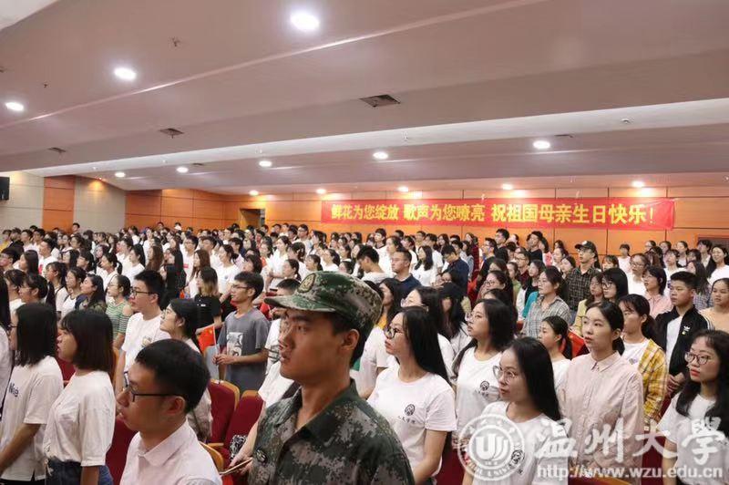 上午九点,活动正式拉开序幕,在场师生合唱《日本a片 校歌》“大哉师道天下尊,承往哲兮启后人。厚培德本,深濬智源,学成致用教化谆。光大国族兮,造福人群。东海水,雁荡山,我温大精神,浩浩宕宕。”大屏幕上徐徐展开和闪现的照片上寄托着温大人对祖国母亲最真挚的祝福,诉说着温大人对祖国母亲诚挚的愿望。