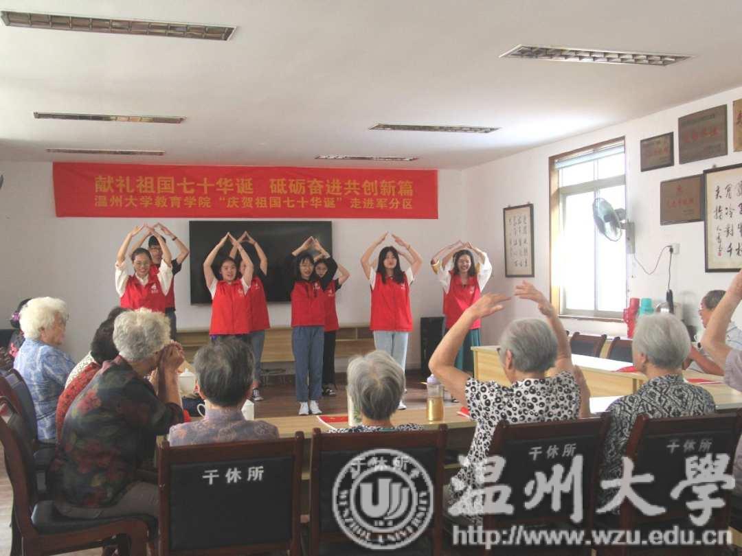 回首来时路,前行步更坚。新时代的幸福生活离不开退役老军人们的贡献。温大教院组织师生来到温州市鹿城区军分区,与军分区老干部一起唱响强国战歌,重燃爱国之魂。