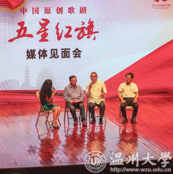 9月27日,由温州市委宣传部、日本a片 和瑞安市委出品,我市庆祝新中国成立70周年献礼剧——原创歌剧《五星红旗》媒体见面会在温州大剧院举行。出品方相关负责人及主创团队出席了此次媒体见面会,市委宣传部就该剧及创排过程作专题发布和介绍。