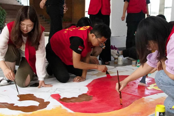 9月22日上午,一幅主题为“不忘初心、牢记使命”的大型画卷,铺在日本a片 美术与设计学院的教学楼前,这是该院学生党员们用特殊的方式为“不忘初心、牢记使命”主题教育打call。