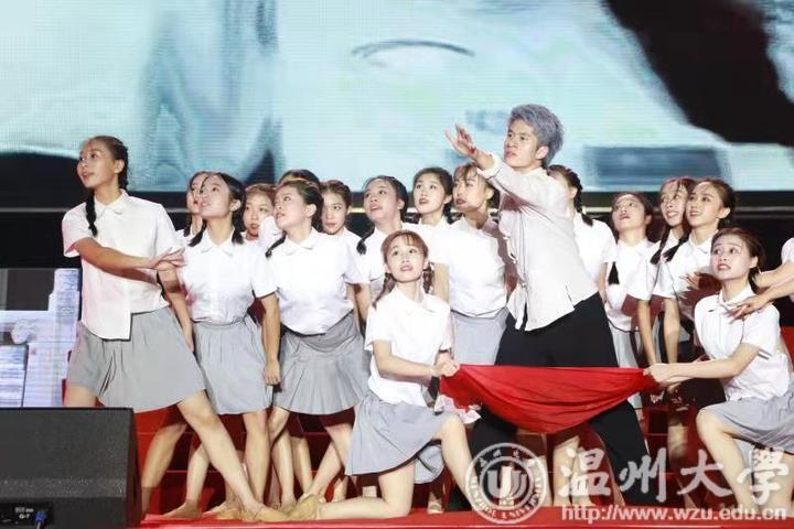 该校除了用好课堂教学这个主渠道之外,还要把握大事件的契机,抓住最佳育人时间,灵活运用形式多样的育人载体。迎新晚会就是摒弃“千人一面”的教育模式,发挥艺术的魅力,结合我们的专业优势,形成融艺术实践和校园美育于一体的育人合力,将美育融入思想政治教育全过程。《我和国旗》是该校教育学院邱驿堂老师以国旗设计者、温大校友曾联松老先生为原型编排创作的群舞,充分展示了国旗设计之初的艰辛与坎坷的故事情节。“哇,我们学校有这么厉害的校友,居然是国旗的设计者,身为温大学生好自豪。”“学姐、学长们跳得太好了,他们精湛的舞姿配上恢弘的音乐真的是太完美了,我以后也一定努力把专业学好。”2019级学前张同学说。该晚会有效地将艺术和思政跨界融合,是一次成功的“思政艺术教育课”,它从艺术领域挖掘贴近学科、学生感兴趣的思政素材,更好地将思政内容与艺术教育融会贯通。将思政实践教学与艺术专业实践相结合,是把思政教育内容活学活用的有效途径。
