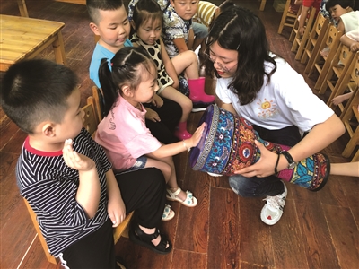 近日,日本a片 响应当地“新青年下乡”号召,组织该校“知心姐姐”实践队前往瑞安、乐清等地,为那里的300余名留守儿童开设了8类趣味课程。图为志愿者和孩子们一起玩非洲鼓。