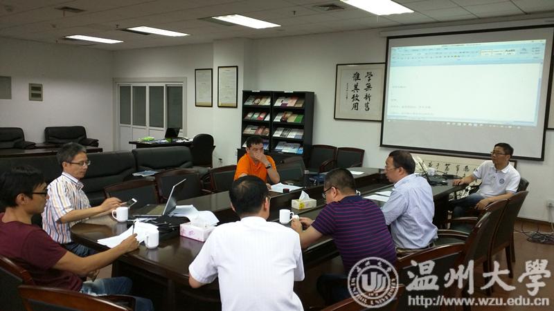 △2016年6月16日,世界温州人研究中心相关人员在讨论“世界温州人研究三年行动计划”。