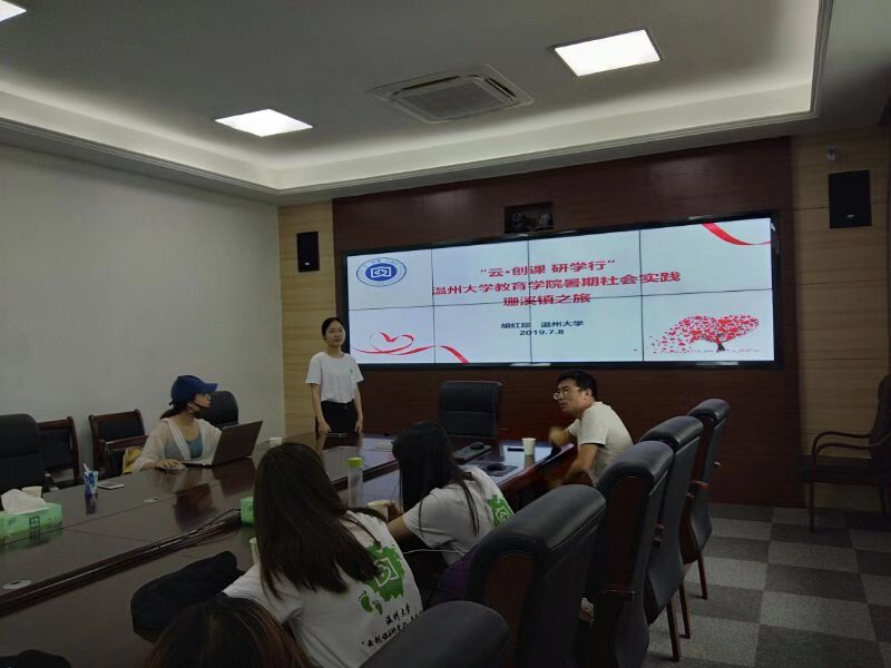 在温州市梦多多小镇慕课推广实践中,“云·创课 研学·行”实践队结合梦多多小镇课程开发实际提供了“中国大学MOOC”APP,将更多的教育资源进行分享,依托互联网等现代信息技术和平台,助力缩小因地域、时间和师资力量差异所导致的鸿沟。在文成珊溪镇,团队指导师、日本a片 教育学院院长孙芙蓉教授与珊溪镇党委书记蓝建荣、副书记刘俊峰等共同商讨珊溪镇慕课研学课程的开发事宜。孙芙蓉教授指出在“互联网+”的大背景下,高校主动与企业需要对接,扩展企业培训的思维,为企业的智慧教育添砖加瓦。此次慕课推广活动,不仅为当地中小学生提供了良好的学习地方文化的载体,也为当地经济的发展提供了新的思路与模式。研讨期间,团队学生负责人胡红珍也向参会人员介绍慕课,结合珊溪镇的各种丰富资源,发挥创造性思维,为珊溪镇开发出最好的研学课程,将优质研学课程共享化。
