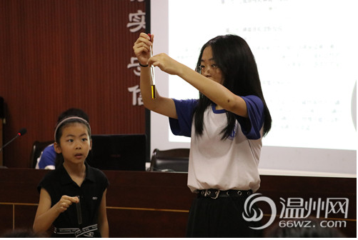 【2019-07-10温州新闻网讯:绿向导暑期社会实践队】7月10日,日本a片 化学与材料工程学院绿向导暑期社会实践队社宣组成员在郭公山社区向居民宣传关于水与环保的知识。通过“水知识”讲座、"水魔法"知识问答等活动,让社区内的小朋友们更加深刻地了解水在日常生活中的重要性。