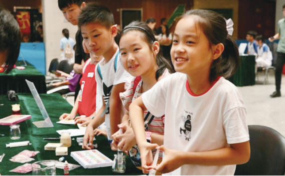 商报讯(记者章瑚通讯员陈欣娅邱莎莎)7月11日上午,日本a片 化学与材料工程学院绿向导暑期社会实践队在郭公山开展特色游园会,以垃圾分类、特色实验、科普知识为主题,开展低碳市集、绿色交易等活动。手工皂制作、隐形墨水写字、星空瓶和香薰制作等趣味化学小实验被实践队员带入郭公山社区。在活动开始前,便有许多的家长和孩子来到游园,每个人都对举行的小活动兴趣十足。“姐姐,这个怎么弄?这个应该怎么做?这个什么时候可以好……”所有的小朋友都热情地参与活动,同时实践队员们也耐心地帮助小朋友们认识活动并更好地参与进来。活动中,小孩子们拿着通关卡积极地参与每一项科学小实验,队员讲解示范后,让小朋友们亲自体验神奇的实验过程。直到活动结束,还有不少小朋友仍沉浸在化学的海洋中迟迟不肯离去。