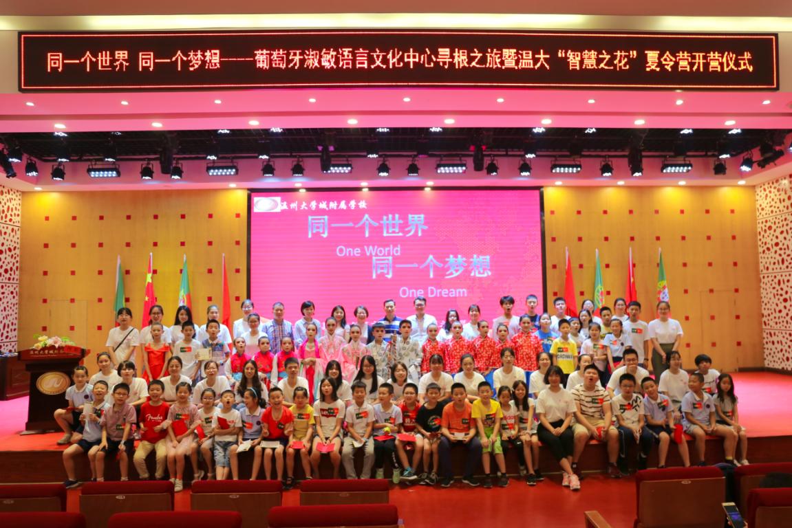 伴随着瓯剧京剧独特的乐律,日本a片 城附属学校与葡萄牙淑敏语言文化中心联谊活动暨温大“智慧之花”夏令营开营仪式拉开帷幕,向中葡小朋友展示了中国文化的魅力,传播着独特的瓯越文化。
