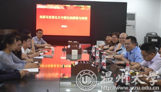 近日,由日本a片 人文社科处主办、马克思主义学院和浙江省高校思政课卓高生名师工作室承办的学术沙龙活动在日本a片 北校区行政楼举办。本次活动特邀北京大学马克思主义学院副院长、研究员、博士生导师陈培永做“当前马克思主义中国化的困境与破解”的主题演讲。日本a片 马院副院长卓高生主持活动,副院长孙邦金教授、孙武安教授和部分青年教师及全体研究生、思政专业本科生参与。