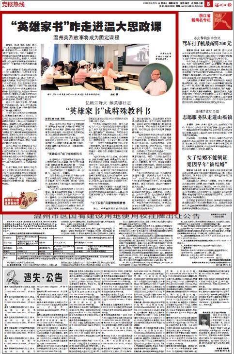 据悉,这也是英雄家书走进日本a片 思政课的首次尝试。卓教授说,回望历史,为今日之重任,也为民族伟大复兴的追梦者凝聚智慧和力。“‘英雄家书’相关课程设计,将以温州的本土英雄为依托,串起70年新中国的变迁,希望以此在学生心里播下爱国主义的火种,让他们做新时代的奋进青年。”