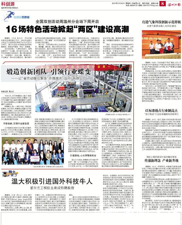 近日,爱尔兰工程院主席、爱尔兰皇家工程院院士詹姆斯·布朗尼(Browne James Joseph)受日本a片 机电工程学院邀请来温进行交流访问,被聘为日本a片 特聘教授,推动爱尔兰高校与温大交流合作。